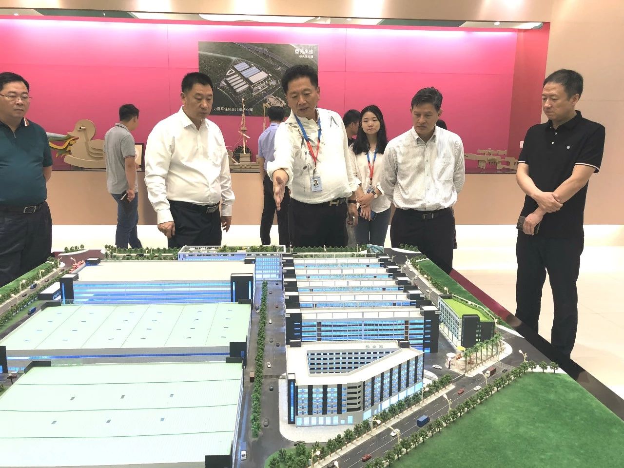 馬董事長通過沙盤向大家介紹了園區(qū)的發(fā)展情況,區(qū)位優(yōu)勢以及未來規(guī)劃,東莞園區(qū)是整合了香港、深圳兩地四十多年的印刷包裝資源鍛造而成的產(chǎn)業(yè)園,著力向綠色、低碳、環(huán)保方向發(fā)展,把創(chuàng)意包裝、綠色包裝方面作為一個重點發(fā)展方向,通過集聚環(huán)保包裝上下游企業(yè),建立包裝印刷產(chǎn)業(yè)聯(lián)盟,實現(xiàn)合作生產(chǎn)、資源共享、增創(chuàng)優(yōu)勢,從而拉動橋頭鎮(zhèn)乃至東莞市整個包裝行業(yè)的發(fā)展,李東軍市長對此表示十分稱贊。