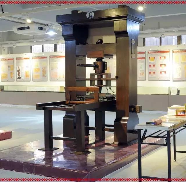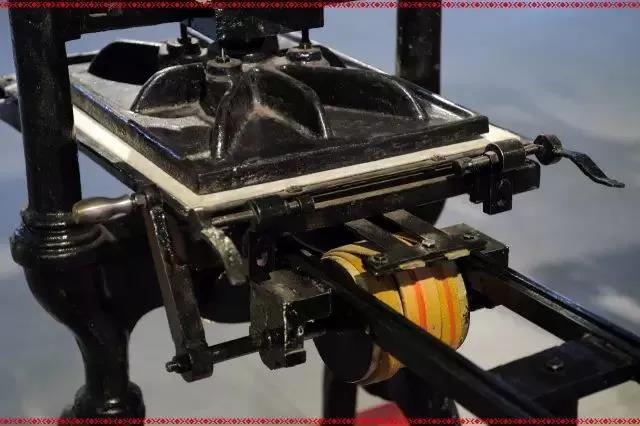 參照壓榨機(jī)的原理設(shè)計(jì)而成,歐洲印刷業(yè)早期普遍使用,操作程序是先將印版放置版臺,隨既涂墨,鋪紙,再將印版推至壓板底下,拉動(dòng)杠桿的手柄,使壓板落下,在印版和紙面上施壓,完成一次印刷過程。
