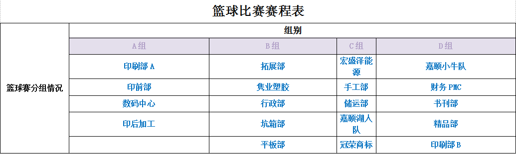 附: 賽事分組及賽程安排